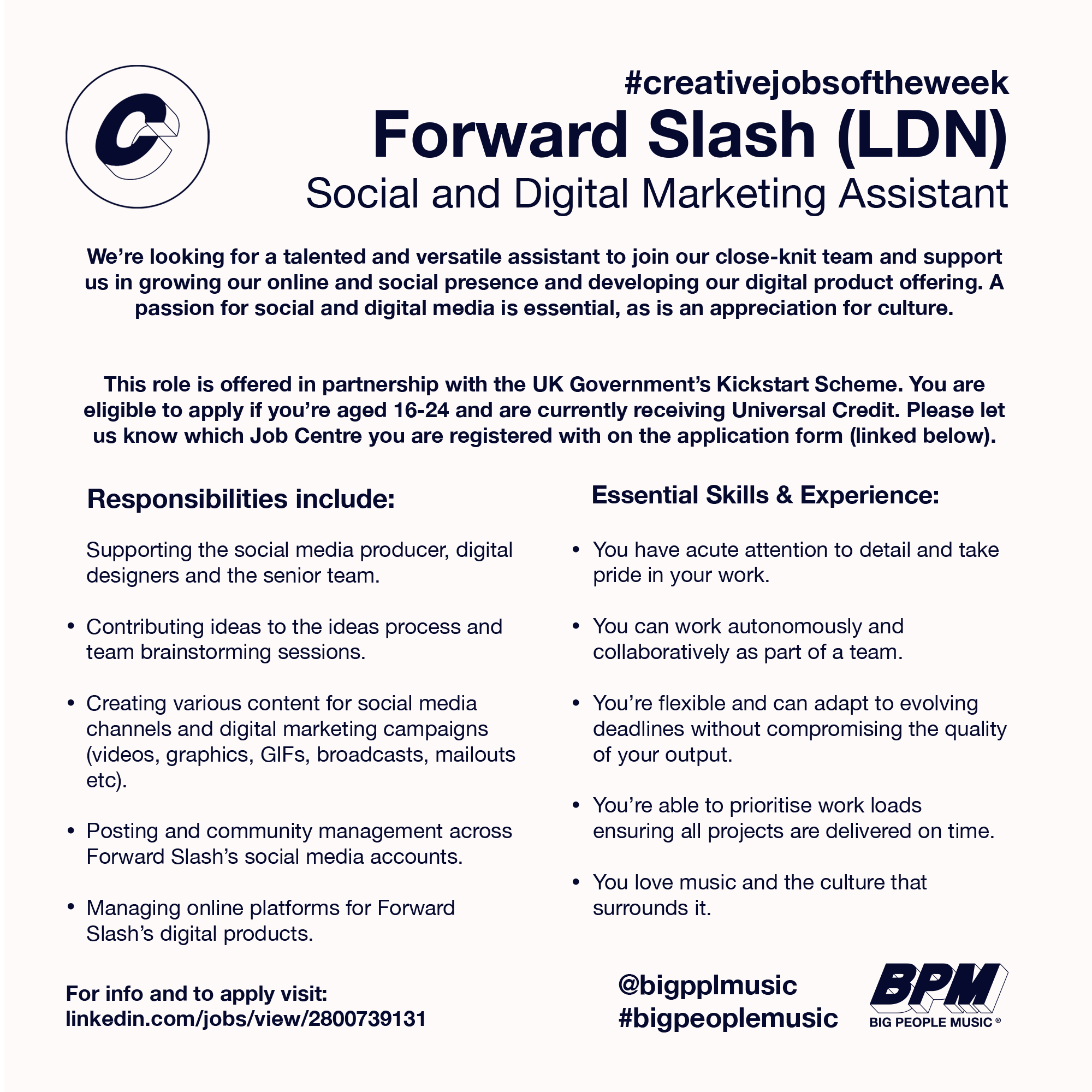 Big People Music On Twitter Social And Digital Marketing Assistant For Forward Slash In London England For More Information On How To Apply Please Go To Https T Co N79erkwx7p Https T Co 34tnyiyxg4 Twitter